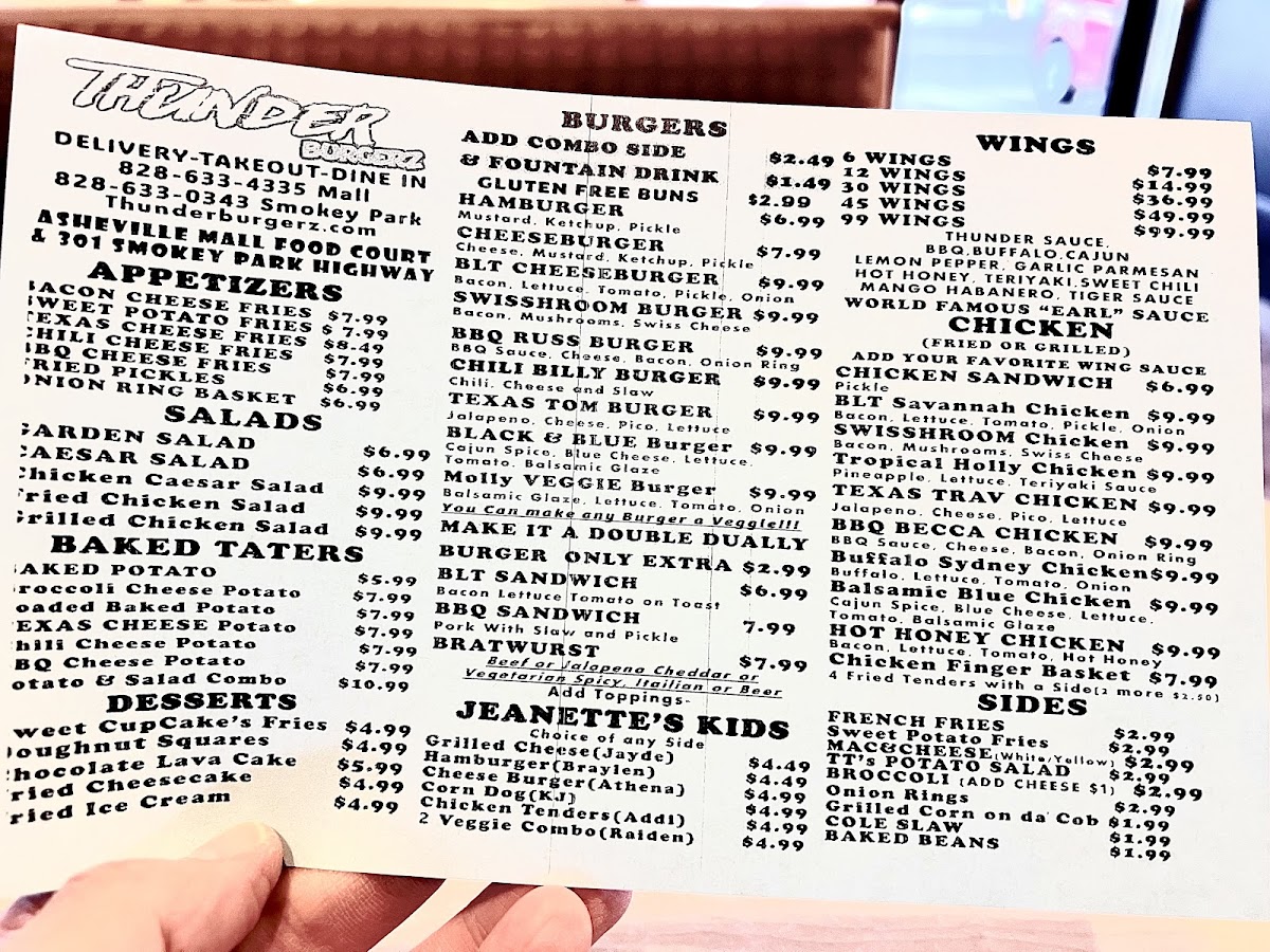 Welcome to Thunder Burgerz Grill, an irresistible gastronomic retreat nestled in Asheville, NC. Indulge in a diverse menu featuring mouthwatering burger creations that cater to every palate. Highlights include the classic Cheeseburger and the indulgent BBQ Burger, topped with smoky barbecue sauce and crispy onion rings. Each burger comes with a gluten-free bun option for those with dietary preferences.