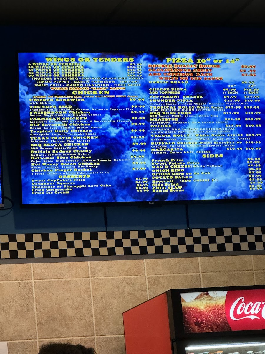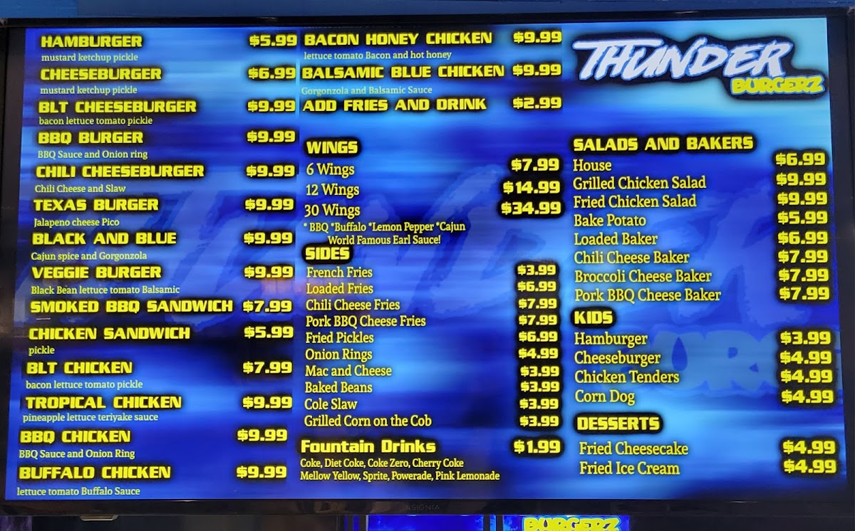 Wing lovers can rejoice with options like Chicken Wings tossed in a selection of six tantalizing sauces, including the renowned Thunder Sauce and Cajun—ideal for spice enthusiasts. Don’t forget to save room for dessert; the Fried Ice Cream and Fried Cheesecake promise a sweet ending to your meal.